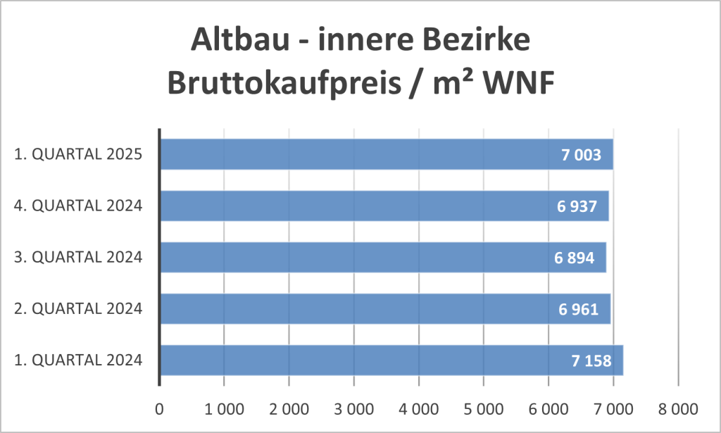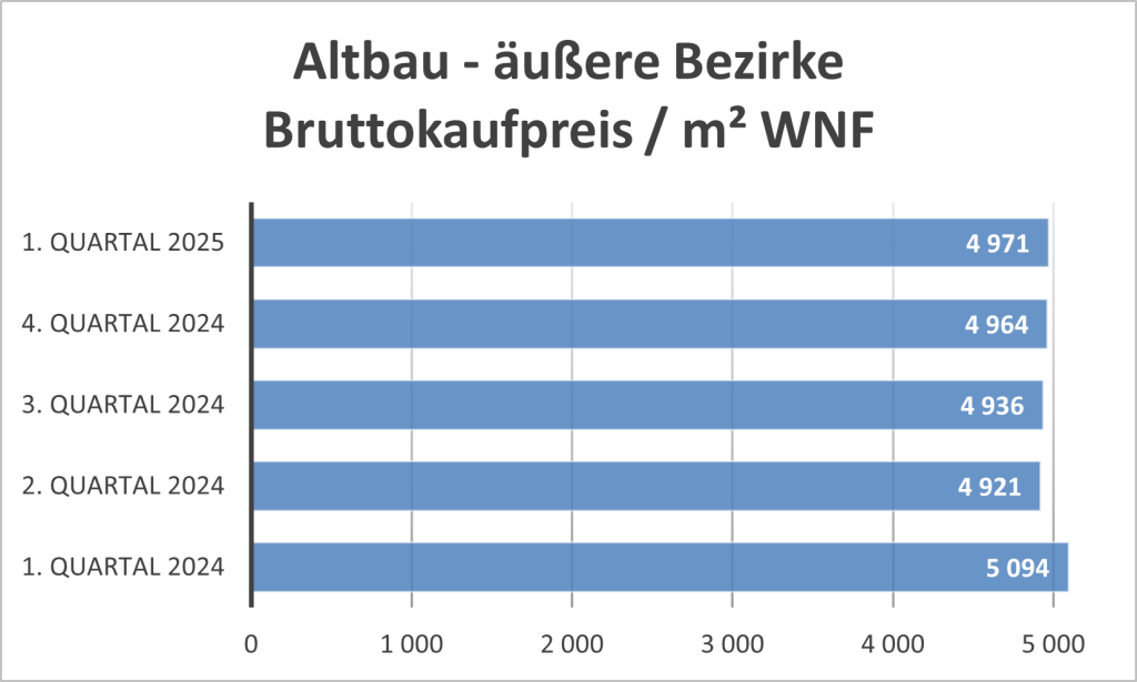 Die Werte sind aufgrund der Heterogenität des Segments mit Vorsicht zu genießen. Zum einen werden Nobelgegenden mit Brennpunktgrätzeln gemischt, zum anderen macht es natürlich einen großen Unterschied, ob eine Wohnung 5 oder 50 Jahre alt ist.