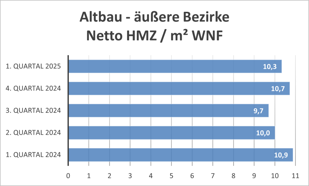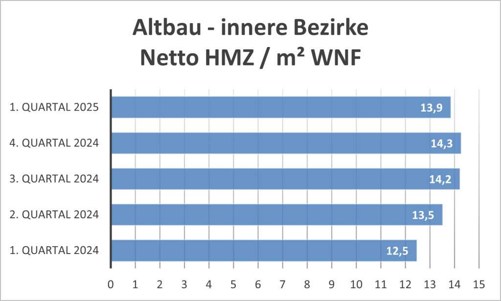 Die Mietrenditen, bezogen auf Nettokaufpreise lagen im Q1 2025 bei etwa 2,75% – 3%.