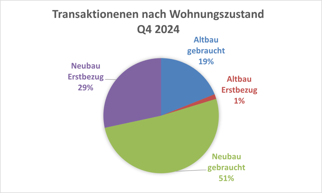 Bei Betrachtung der Preisklassen lässt sich sagen, dass Wohnungen bis max. EUR 400.000 Bruttokaufpreis im Q4/2024 immer noch eine klare Mehrheit von rund 75% aller Transaktionen ausmachten, doch wurden auch wieder Wohnungen in den oberen Preissegmenten gekauft.