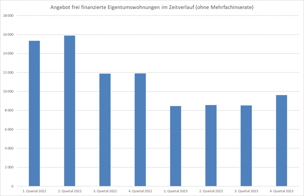 Das Angebot an Eigentumswohnungen ist im Jahr 2023 deutlich, jenes an frei finanzierten Mietwohnungen nahezu dramatisch gesunken, sodass dies Auswirkungen auf die künftige Preisbildung haben wird.